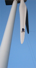 Arbeiten an Rotorblättern und Turmaußenseiten von Windkraftanlagen erforderten bisher teuere und umständliche Zugangstechnik mittels Kran oder